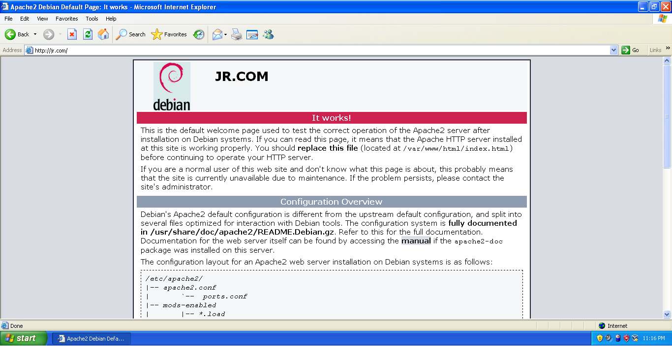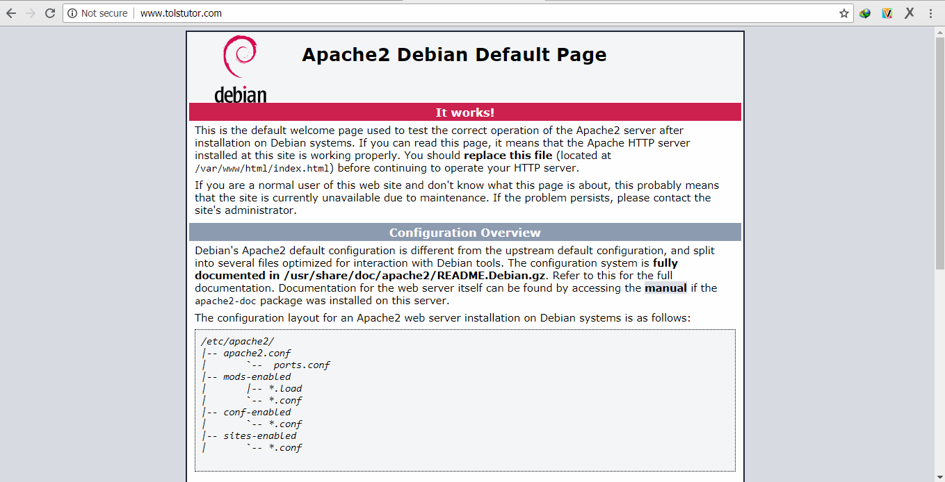 Sudo apache2ctl configtest sudo password for shirish. When you hit the domain name or your server s ip address from a web browser it should open a default apache page on the browser. Sudo systemctl restart apache2 apache should now be serving your domain name.