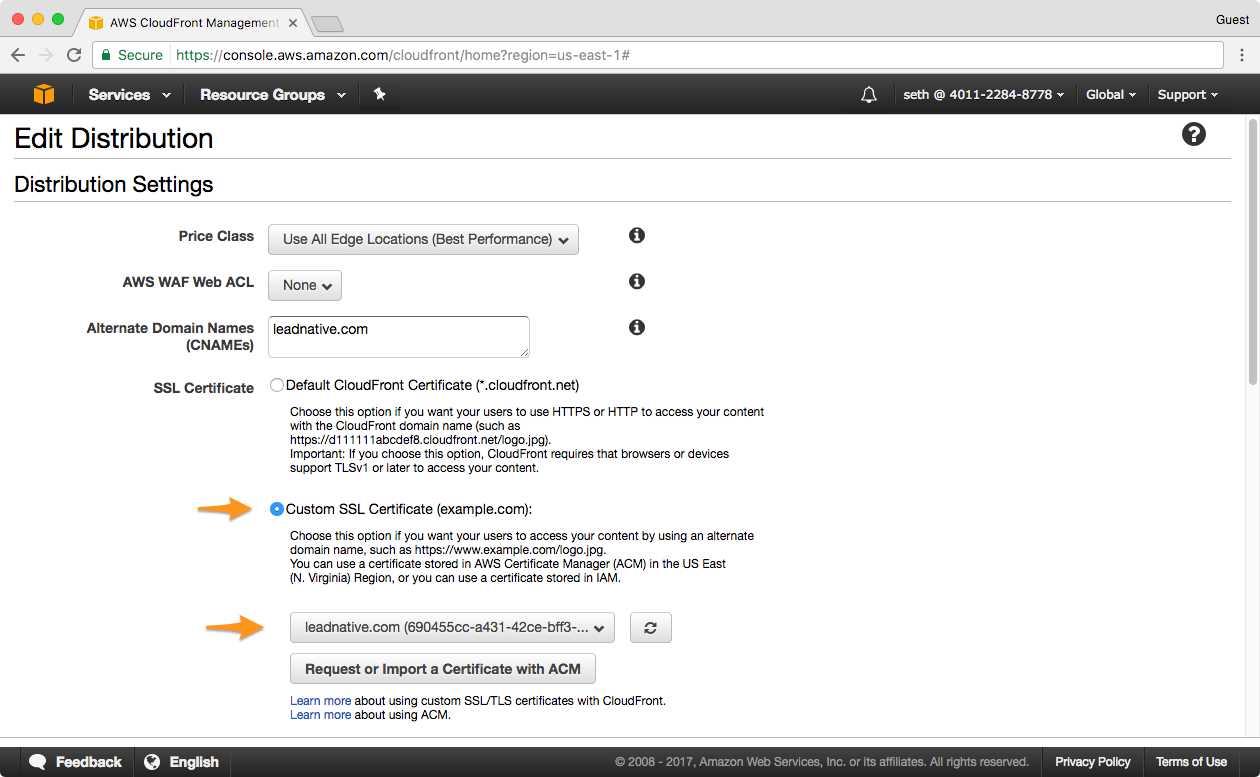 Cloudfront domain name change. A cloudfront web distribution. Now log on your to namecheap account and select the domain name and click on custom dns. Click on the id of the distribution you want the custom domain name for refer image above.